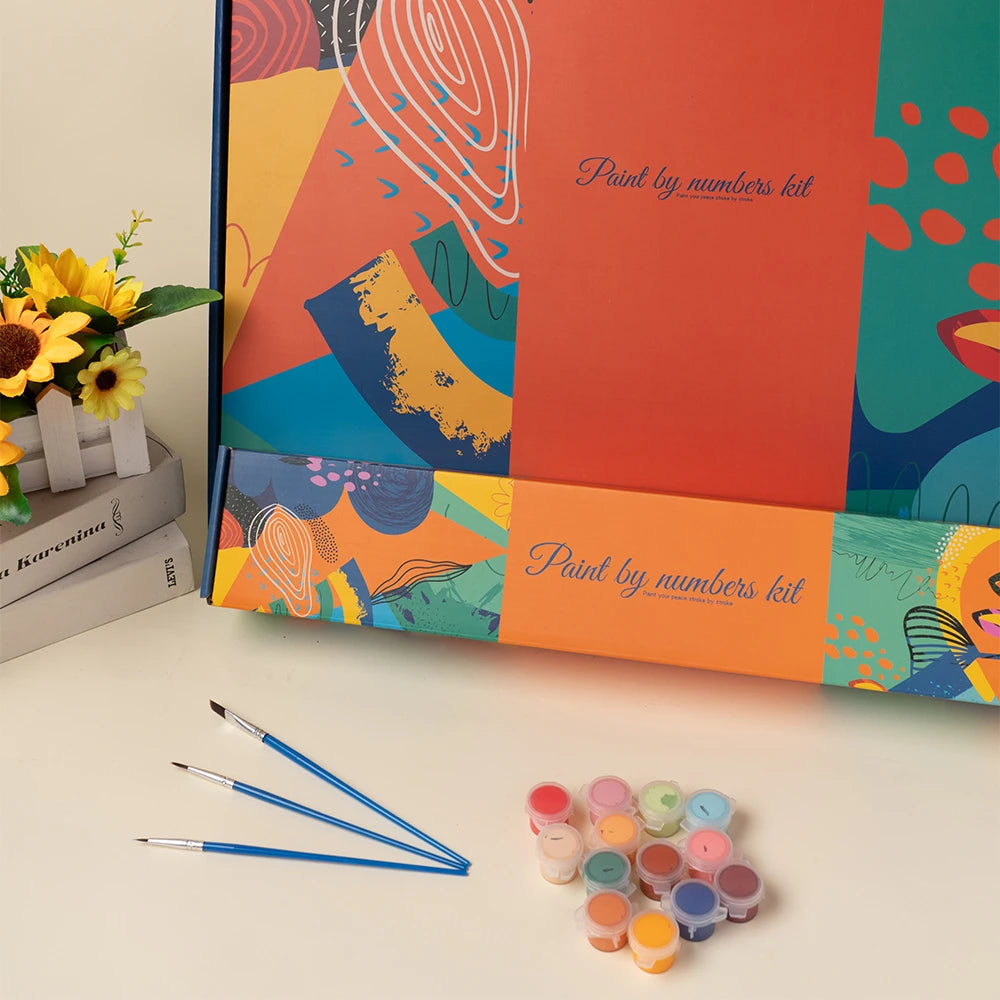 Each paint by number kit includes a pre-printed numbered canvas, high-quality acrylic paints, and a set of brushes to easily guide you in matching numbers on the canvas with paint colors. It also includes landscapes, flowers, abstract paintings, and everything you need to create your painting.