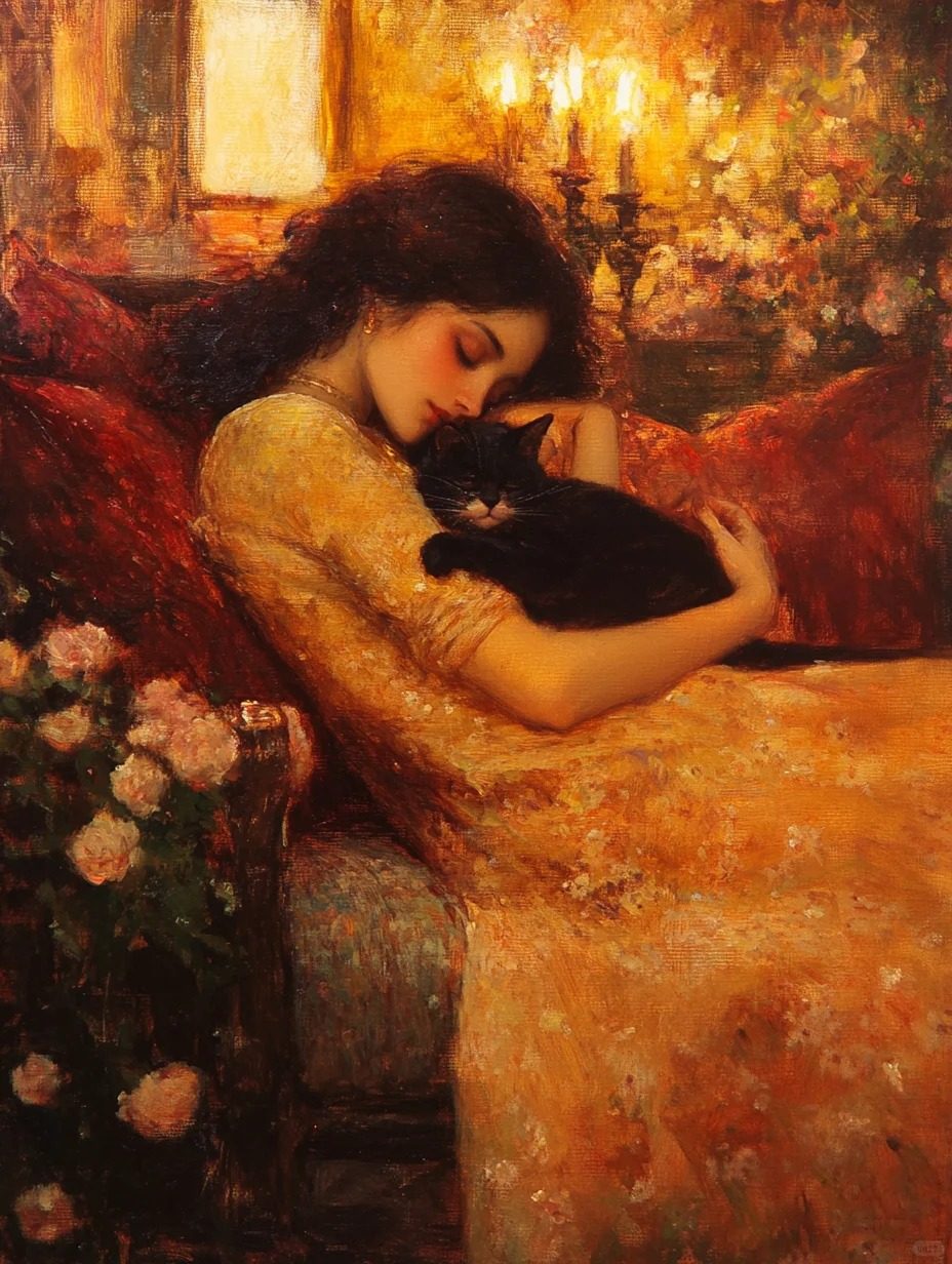A sleeping beauty and a cat 1