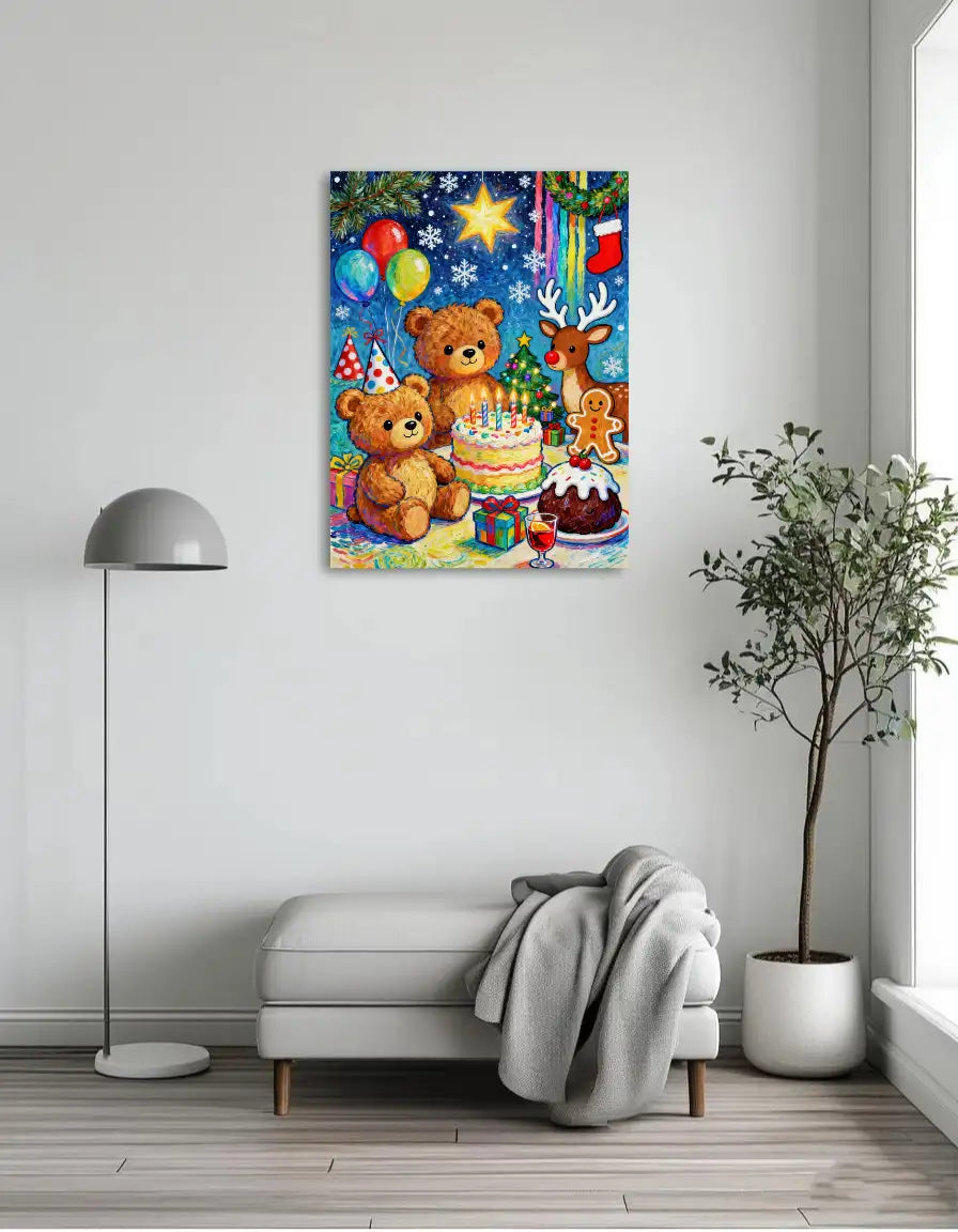 Model: Christmas bear 4 Method: Paint by numbers Difficulty level: Easy Size(s): From16"x20"(40x50cm) Support: Numbered linen canvas Type of paint: Acrylic Packaging: Securely wrapped Packaging