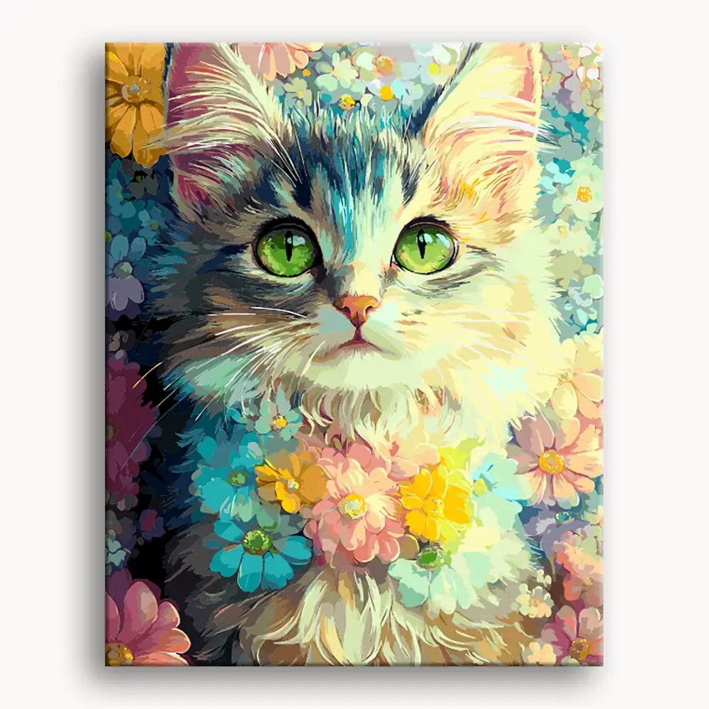 Model: Flower Cat Method: Paint by numbers Difficulty level: Medium Size(s): From16"x20"(40x50cm) Support: Numbered linen canvas Type of paint: Acrylic Packaging: Securely wrapped Packaging