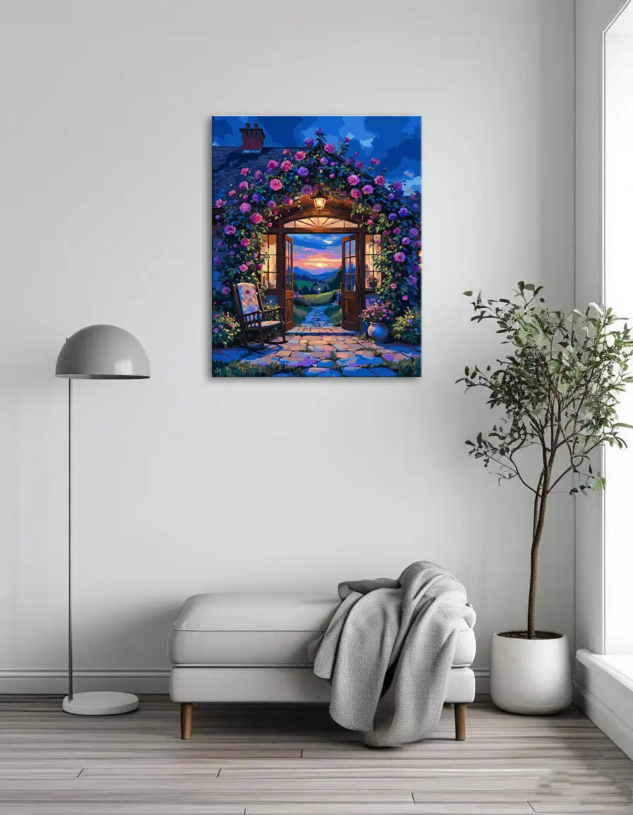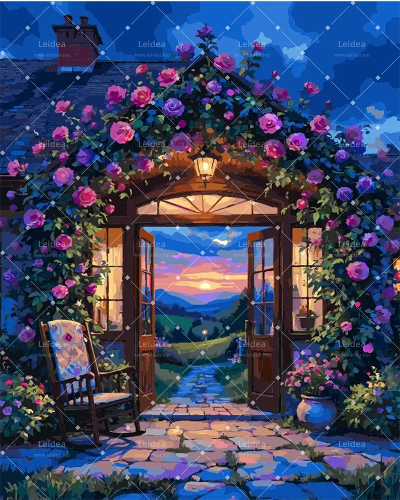 Model: Flower Vines in Front of the House Method: Paint by numbers Difficulty level: Medium Size(s): From16"x20"(40x50cm) Support: Numbered linen canvas Type of paint: Acrylic Packaging: Securely wrapped Packaging