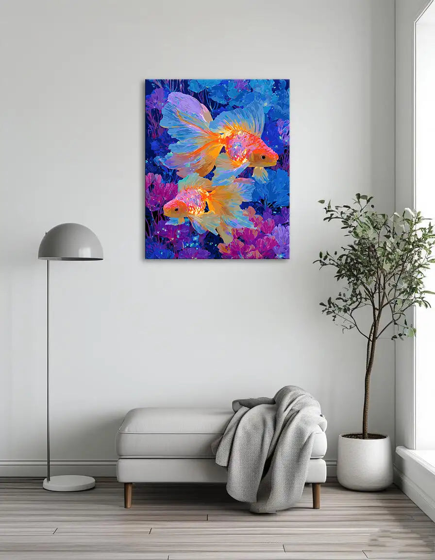 Model: Glowing Fish Method: Paint by numbers Difficulty level: Medium Size(s): From16"x20"(40x50cm) Support: Numbered linen canvas Type of paint: Acrylic Packaging: Securely wrapped Packaging