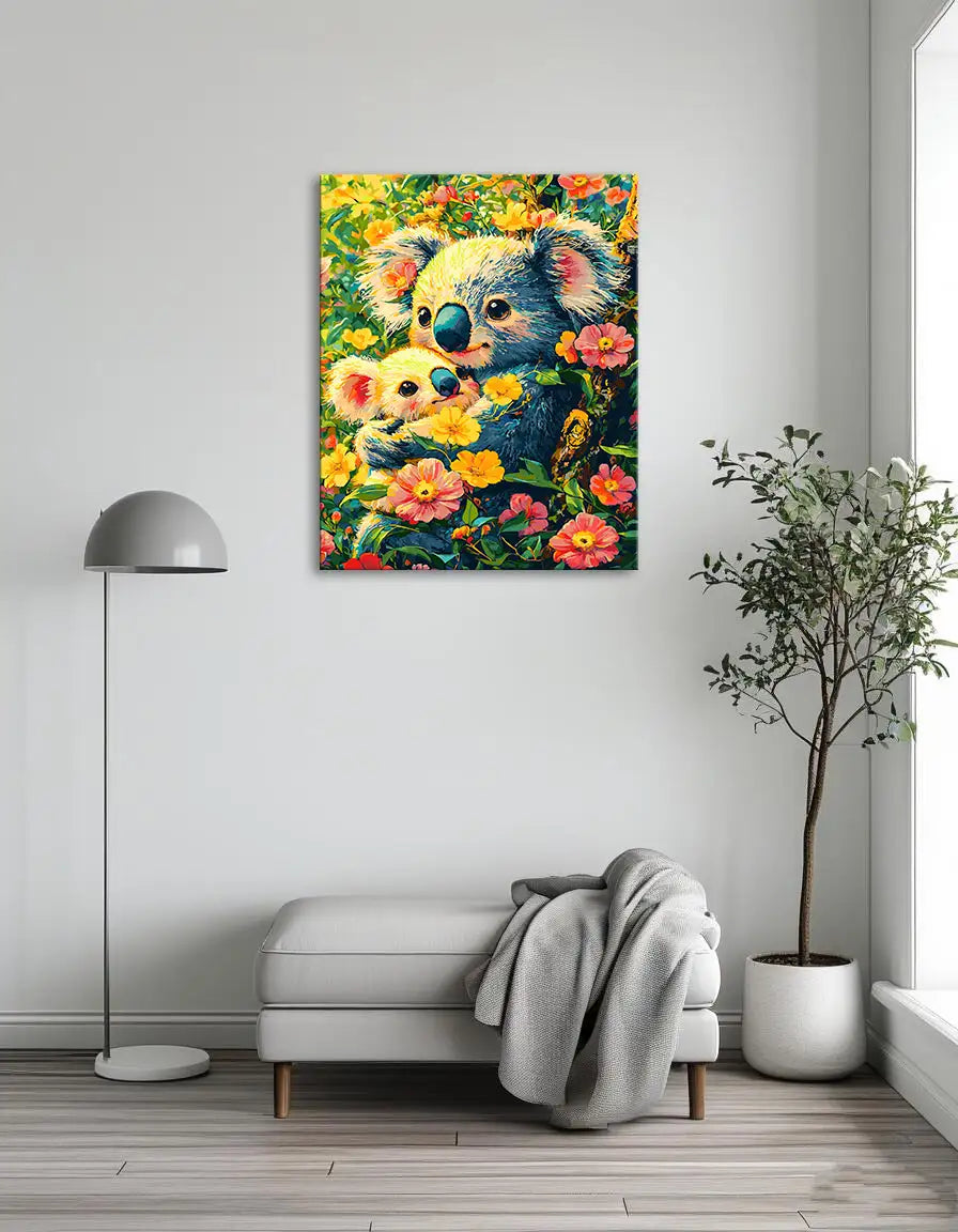 Model: Hug a Koala Method: Paint by numbers Difficulty level: Medium Size(s): From16"x20"(40x50cm) Support: Numbered linen canvas Type of paint: Acrylic Packaging: Securely wrapped Packaging