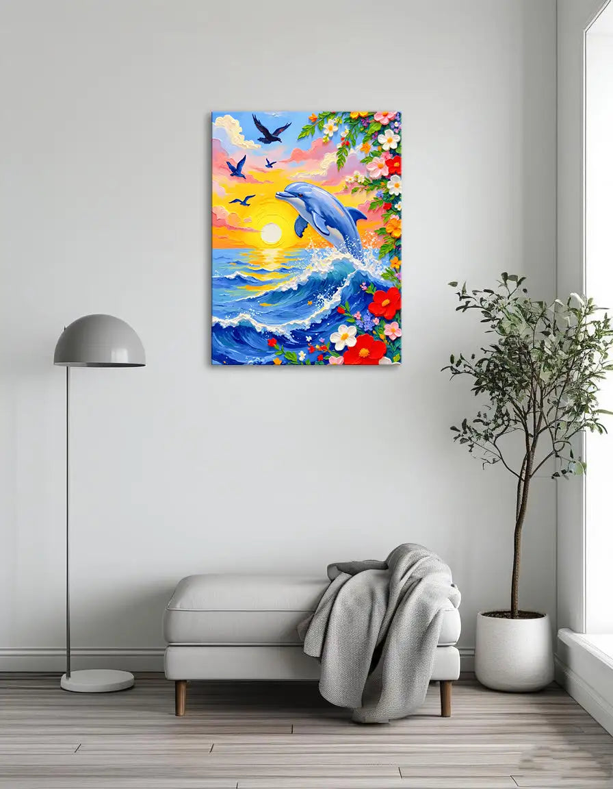 Model: Leaping Dolphins 1 Method: Paint by numbers Difficulty level: Easy Size(s): From16"x20"(40x50cm) Support: Numbered linen canvas Type of paint: Acrylic Packaging: Securely wrapped Packaging