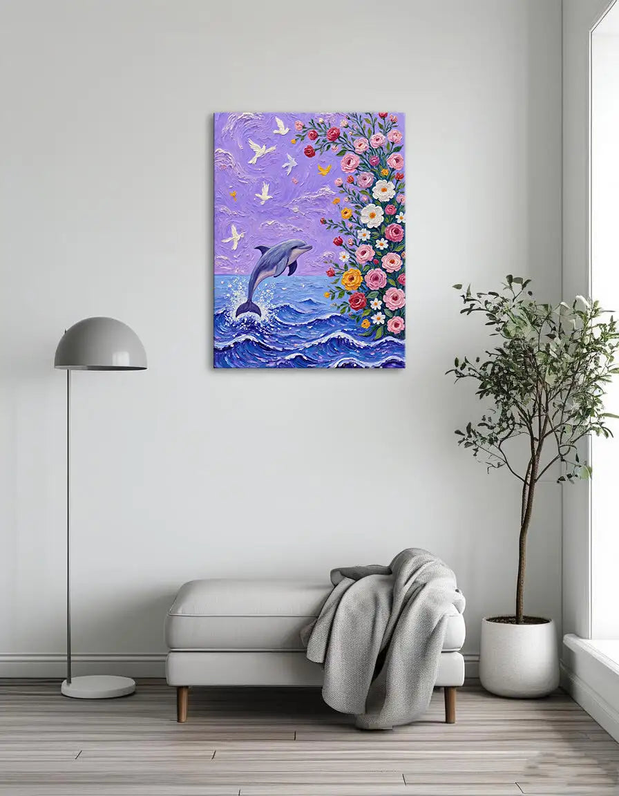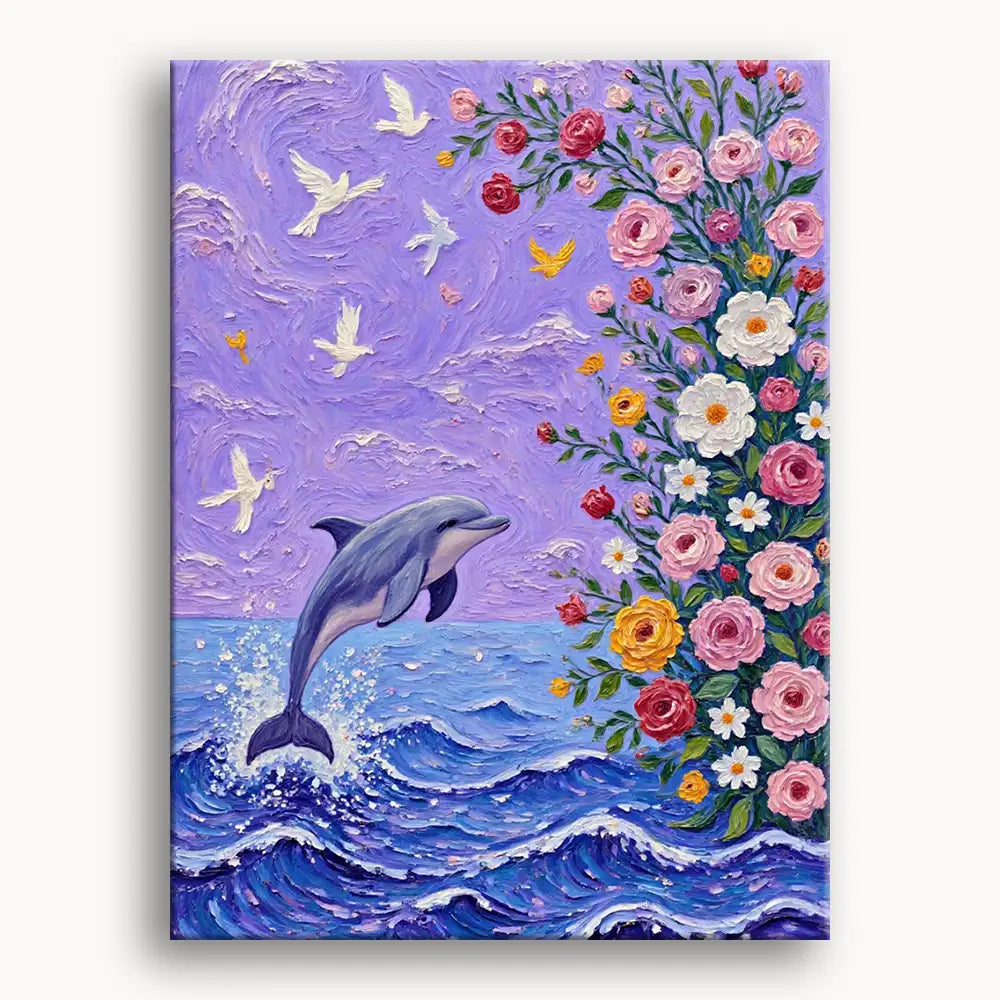 Model: Leaping Dolphins 6 Method: Paint by numbers Difficulty level: Easy Size(s): From16"x20"(40x50cm) Support: Numbered linen canvas Type of paint: Acrylic Packaging: Securely wrapped Packaging