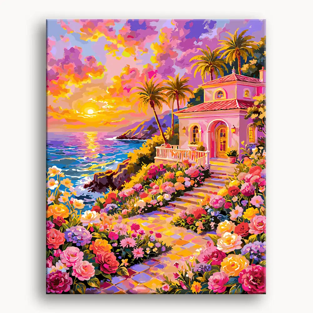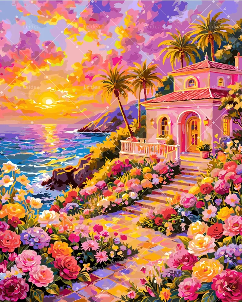 Model: Romantic Coast Method: Paint by numbers Difficulty level: Medium Size(s): From16"x20"(40x50cm) Support: Numbered linen canvas Type of paint: Acrylic Packaging: Securely wrapped Packaging