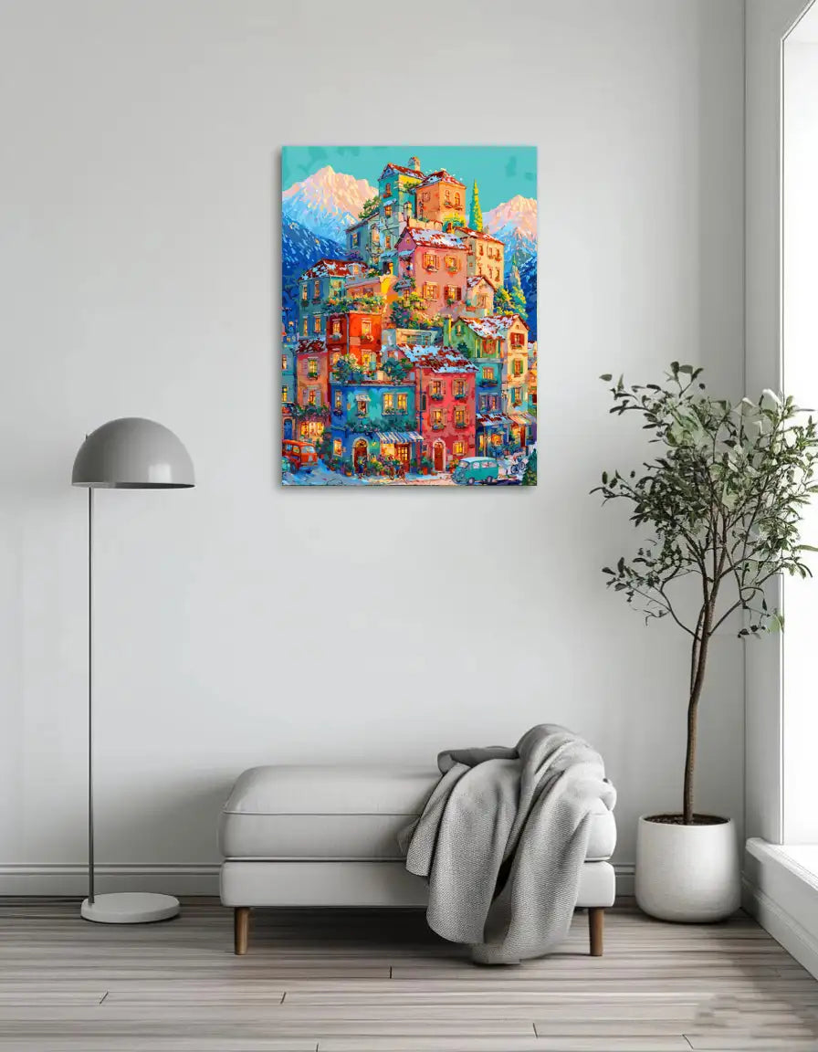 Model: Warm town Method: Paint by numbers Difficulty level: Advanced Size(s): From 16"x20"(40x50cm) Support: Numbered linen canvas Type of paint: Acrylic Packaging: Securely wrapped Packaging